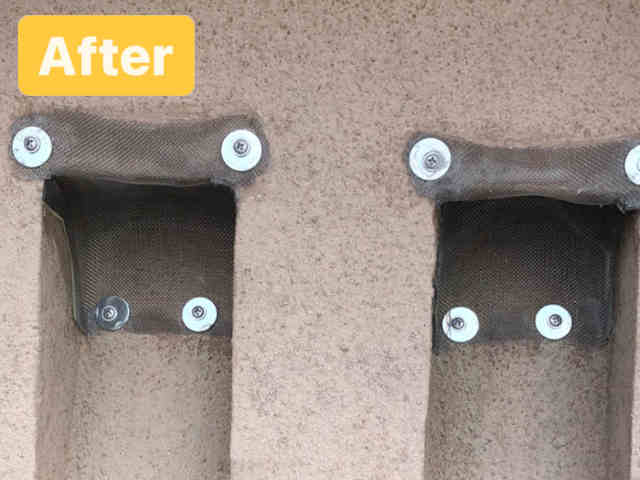 2021年8月1日 / 最終更新日時 : 2022年8月17日 Defense 害虫対策 【通気口網補修工事】直方市 頓野 今回の調査では、通気口の網が外れていてそこから屋根裏に蜂や虫が侵入してきた形跡がありましたので塞ぐ工事を行いました。